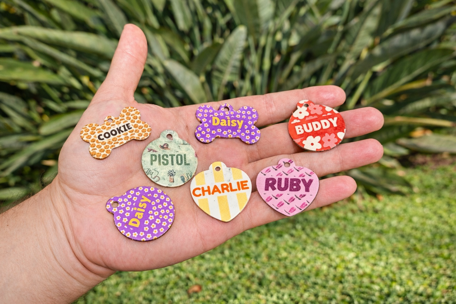 Yes. Our tags are made from lightweight aluminium with a high gloss finish, designed for everyday walks and adventures. While they’re built to last, they are not chew proof and excessive chewing or biting can damage the design and finish.