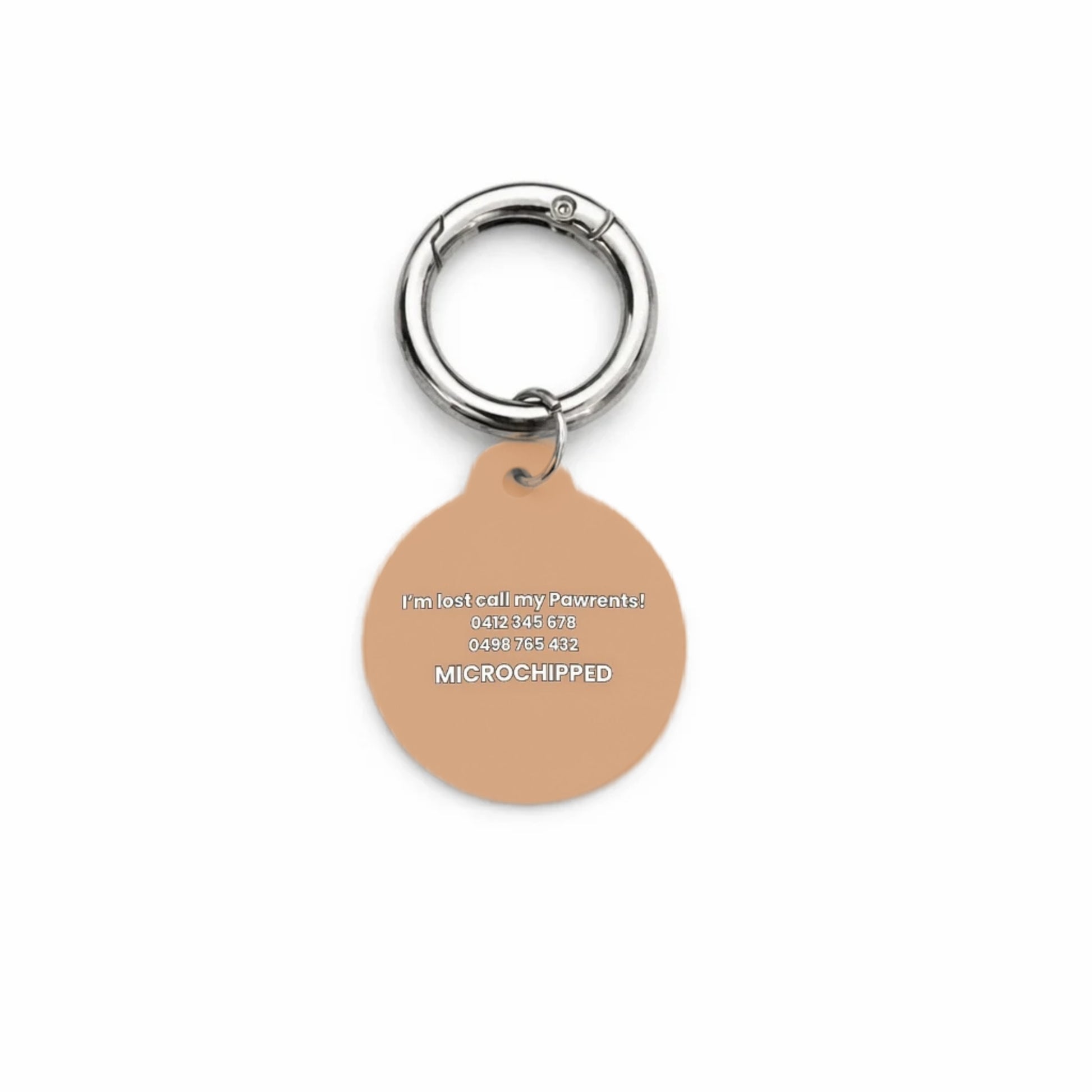 Each tag is fully customisable, with one line of text on the front for your pet’s name, and up to four lines of text on the back. The back can include details such as a contact phone number, microchip information, an additional phone number, or any extra notes you’d like to add for peace of mind.