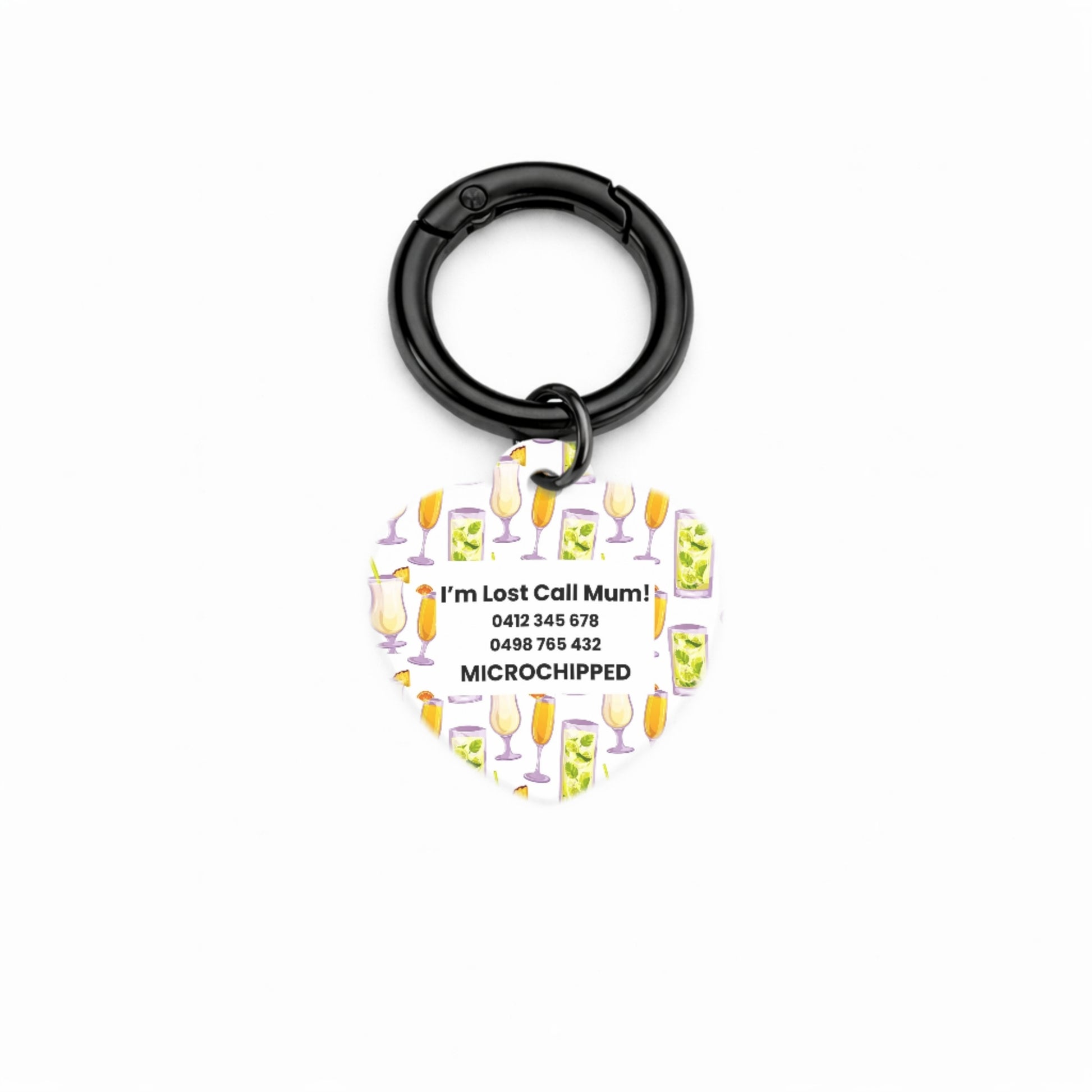 Shake things up with the Cocktail Pet ID Tag — a fun, colourful design inspired by sunny afternoons, clinking glasses, and good vibes only. Featuring playful cocktail illustrations and a bright, cheerful palette, this tag adds a splash of personality to your dog’s collar while staying practical for everyday wear. Lightweight, durable, and made to stand out, it’s perfect for pups who bring the party wherever they go.