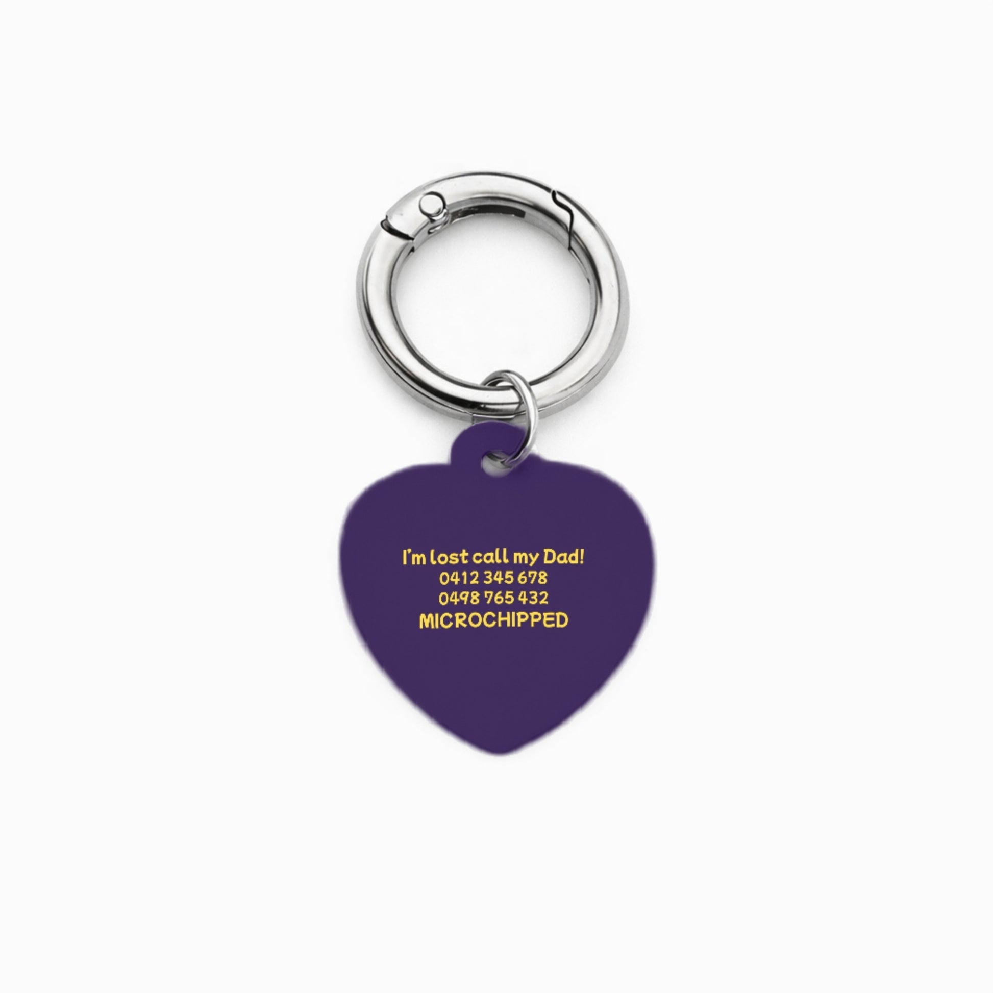Each tag is fully customisable, with one line of text on the front for your pet’s name, and up to four lines of text on the back. The back can include details such as a contact phone number, microchip information, an additional phone number, or any extra notes you’d like to add for peace of mind.