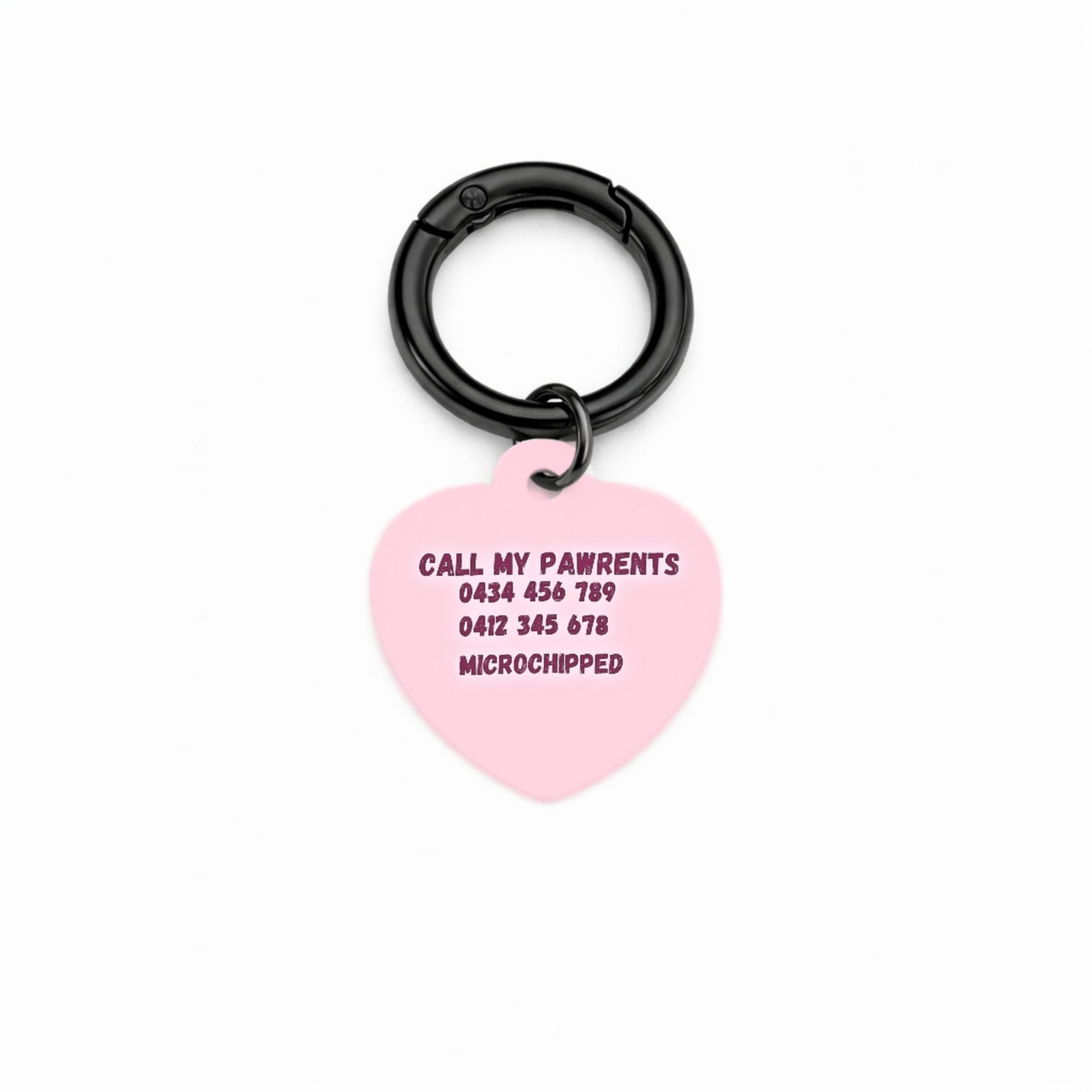 Each tag is fully customisable, with one line of text on the front for your pet’s name, and up to four lines of text on the back. The back can include details such as a contact phone number, microchip information, an additional phone number, or any extra notes you’d like to add for peace of mind.